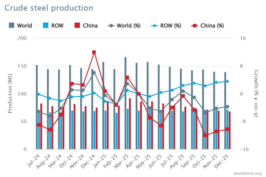 افزایش ۱۶ درصدی تولید فولاد ایران در دسامبر ۲۰۲۵ گروه رسانهای پردازش – انجمن جهانی فولاد (Worldsteel) آمار تولید جهانی فولاد خام در دسامبر ۲۰۲۵ را […]