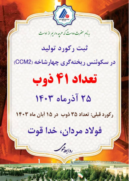 رکورد تعداد ذوب در سکوئنس ریختهگری چهارشاخه (CCM2) شرکت فولاد آلیاژی ایران، شکسته شد. به گزارش روابط عمومی شرکت فولاد آلیاژی ایران، فولاد سازی یک، در […]