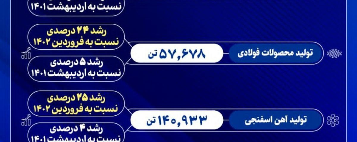 مدیرعامل فولاد خراسان با ارائه جزئیات رشد تولید در این شرکت گفت: تولید آهن اسفنجی در فولاد خراسان در اردیبهشت ماه به ۱۴۰ هزار و ۹۳۳ تن رسید که رشد ۲۵ درصدی نسبت به فروردین سال جاری و رشد ۴ درصدی نسبت به اردیبهشت سال گذشته را نشان می‌دهد.