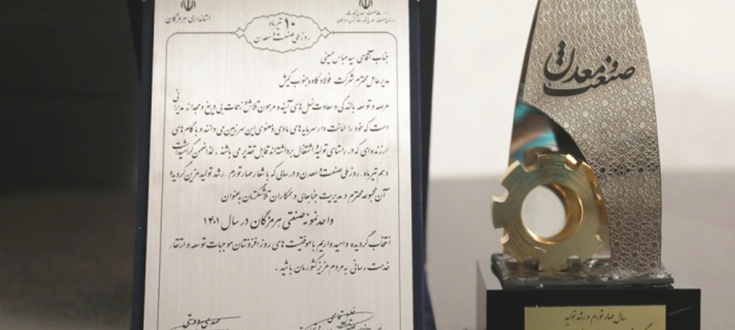 به گزارش روابطعمومی فولاد کاوه جنوب کیش در آیین بزرگداشت روز ملی صنعت و معدن در شهر بندرعباس که با حضور استاندار هرمزگان نمایندگان مجلس شورای اسلامی، معاون وزیر صمت، مدیرکل صمت استان هرمزگان و مقامات استانی در محل سالن همایش حوزه علمیه خواهران بندرعباس برگزار شد از شرکت فولاد کاوه جنوب کیش بهعنوان واحد نمونه صنعتی هرمزگان در سال ۱۴۰۱ با اهدا تندیس و لوح واحد صنعتی نمونه تقدیر شد.
