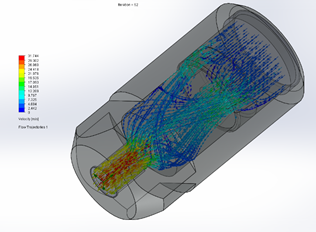 شکل (۲): CFD توزیع سرعت در نازل‌های تولید شده برای اسکرابرها