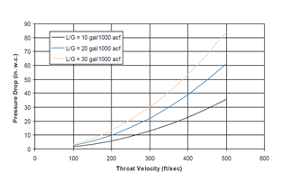 پارامتر دیگر در انتخاب نازل های اسکرابر دبی انتقال آب است. به‌طوری‌که اگر تعداد قطرات آب به منظور برخورد با غبار از میزان مشخصی کمتر باشد غبارگیری به‌صورت کامل انجام نمی‌گردد. نمودار (۱) ارتباط مصرف آب و سرعت گاز در زمان برخورد با قطرات آب را بیان می‌دهد.