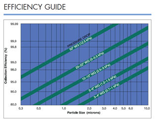 و نمودار (۲) بیانگر رابطه دانه‌بندی ذرات غبار با بازدهی اسکرابر در مقابل مصرف انرژی که رابطه مستقیم با افت فشار اسکرابر را دارد بیان می‌کند. به‌طوری‌که برای رسیدن به بازدهی جذب غبار بالا نیاز به مصرف انرژی بالاتر است و هرچه غبار ریزدانه‌تر باشد برای رسیدن به بازدهی مشخص مصرف انرژی نیز بیشتر می‌گردد.