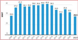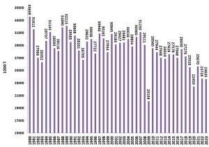 سهم صنایع خودروسازی در این مصرف ۲۸ درصد بوده است. در شکل (۷) رشته‌های مصرف‌کننده فولاد کشور آلمان در سال ۲۰۲۳ از نظر می‌گذرد. در شکل (۸) روند مصرف فولاد کشور به نمایش گذاشته شده است. مصرف سرانه کشور آلمان در سال ۲۰۲۳، به میزان ۳۳۶/۵ کیلوگرم بوده است.