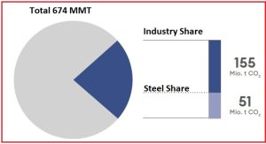 ميزان انتشار گاز  CO2 در صنايع فولاد آلمان در شرایط کنونی یک هزار و ۴۳۰ کیلوگرم بر تن فولاد خام می‌باشد. ميزان انتشار گاز CO2 برای محصولات نهایی نیز یک هزار و ۵۲۰ کیلوگرم بر تن بوده است. در واقع در واحدهای نورد محصولات فولاد میزان انتشار گاز CO2 به مقدار ۹۰ کیلوگرم بر تن فولاد می‌باشد.