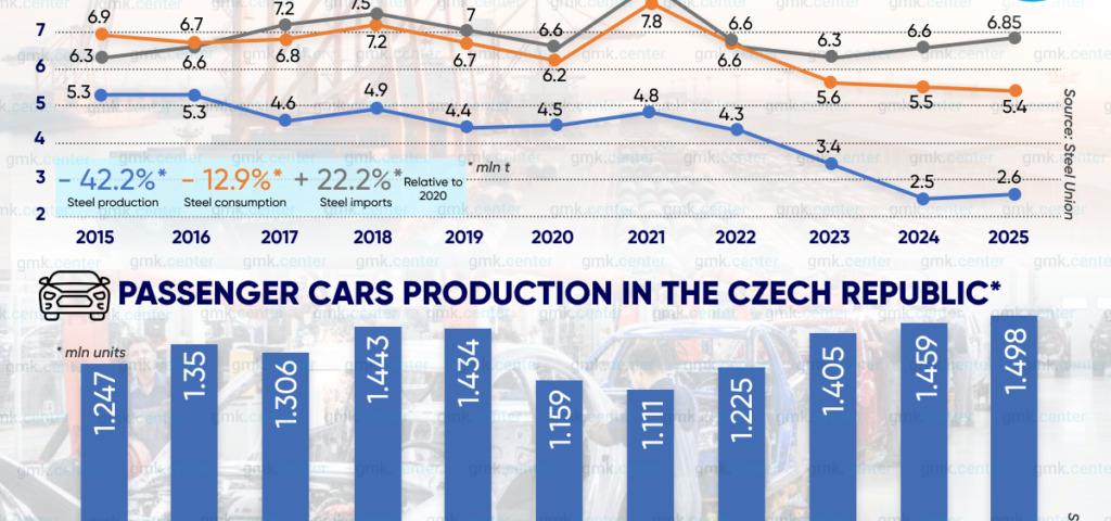 در سال ۲۰۲۵ تولید در کارخانه هیوندای نوشوویتسه ۱۶.۱ درصد و در کارخانه تویوتا کولین ۱.۹ درصد کاهش یافت. با این وجود، عملکرد قوی شرکت Škoda Auto (زیرمجموعه Volkswagen AG) رکورد جدیدی برای کل صنعت ثبت کرد و از تقاضای ورق فولادی حمایت نمود.